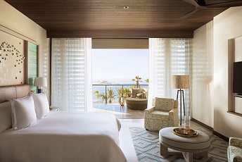 Nestled along a protected cove, the most desirable beach in Los Cabos has long been known for its tranquil, swimmable waters and pristine coral reefs, where a short venture out to sea unveils a hidden underwater world of tropical fish and sea turtles. The new Chileno Bay was created with a distinct vision to bring a contemporary take on the classic Baja escape with an airy, open aesthetic that blurs the line between indoor and outdoor with private terraces in each guest room.